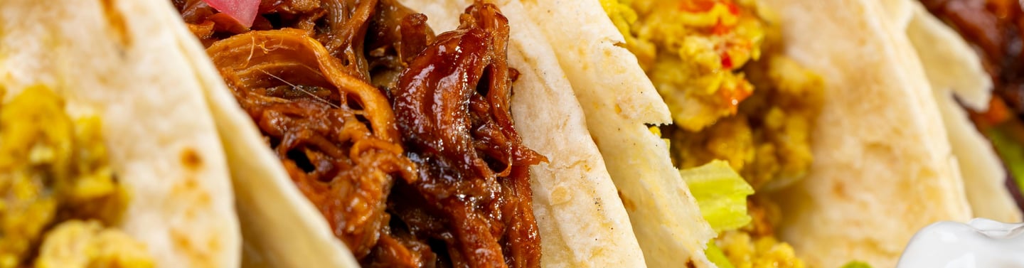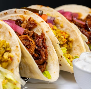 Soft or hard corn tortilla with your choice of meat, mixed cheese, lettuce, tomatoes and sour cream.